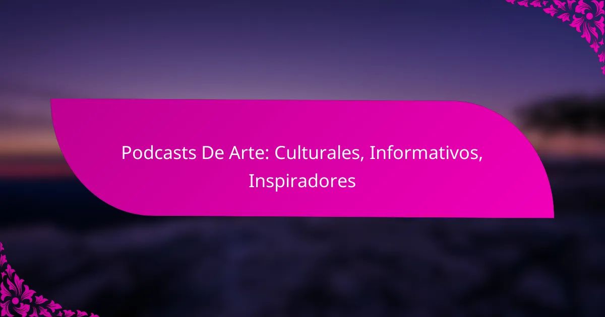 Los podcasts de arte son una ventana fascinante al mundo artístico, abarcando historia, crítica y creación. Estos programas ofrecen una variedad de enfoques culturales, informativos e inspiradores, permitiendo a los oyentes conectar con la comunidad artística y mantenerse al día con las últimas tendencias y eventos. Escuchar estos podcasts no solo estimula la creatividad, sino que también enriquece el conocimiento sobre el arte en sus múltiples formas.
